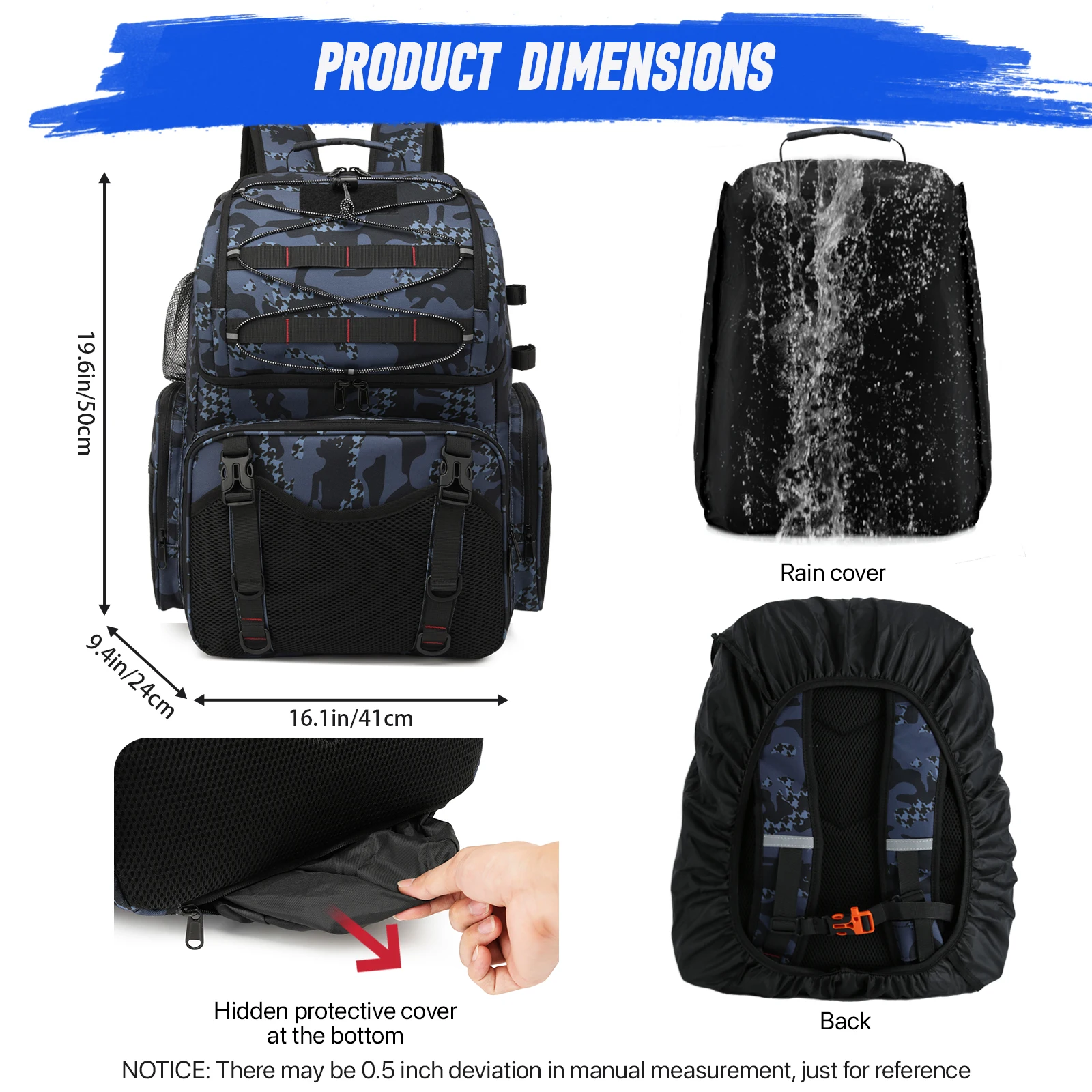 This 45L fishing backpack offers large-capacity storage for all your gear. The built-in cooler compartment keeps bait, drinks, or catches fresh. Multiple pockets provide organized storage for tackle and accessories. Integrated rod holders allow hands-free transport of fishing rods. Durable materials ensure long-lasting outdoor performance. The included rain cover helps protect your gear in wet weather. Comfortable shoulder straps support extended carrying during trips. Suitable for fishing, camping, hiking, and outdoor adventures. Spacious design accommodates gear for full-day outings. This multifunctional backpack combines storage, cooling, and convenience for anglers. 🎣