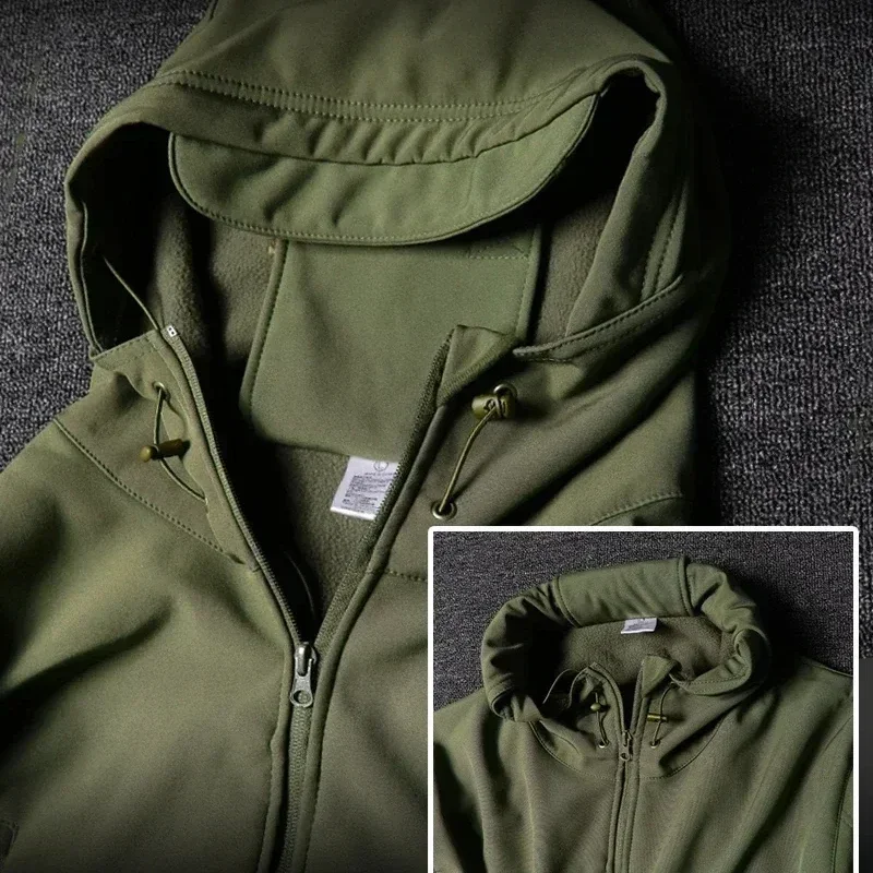 Designed as a 2-piece set, it includes a hooded tactical jacket and fleece-lined pants.
